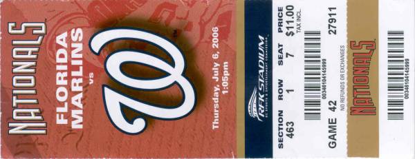 Nationals vs. Florida Marlins - July 6th, 2006 (Thurs 1:05PM)